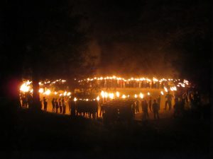 全員がトーチ棒を持って行う分火。