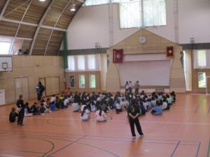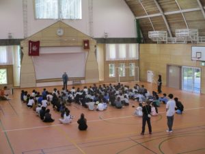 閉校式終了後、窯元やまのに向けて、自然の家を出発しました。