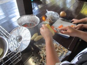 朝ごはんをしっかり食べて『野外炊飯』です。