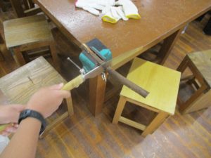 ベルトサンダーや切り出しナイフを使って加工していきます。