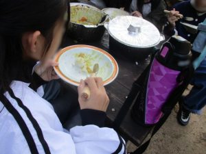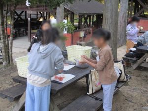朝ごはんをいっぱい食べて『野外炊飯』です。