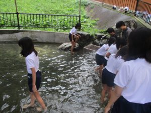 今日のプログラムは『あまごつかみ』『勾玉づくり』『リーダー交流会』です。