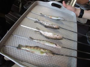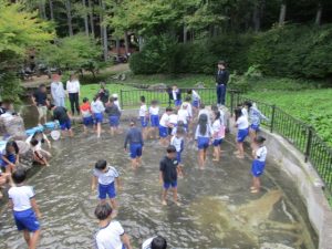 午前と午後で『あまごつかみ』『枯れ枝キーホルダーづくり』を交互に行いました。