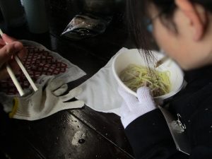 雪遊びの後は『野外炊飯』です。