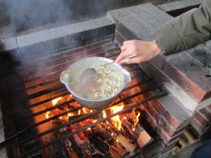 雪遊びの後は『野外炊飯』です。