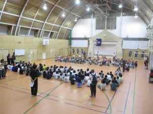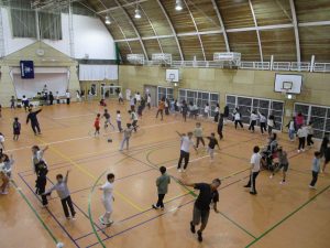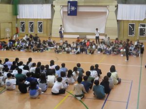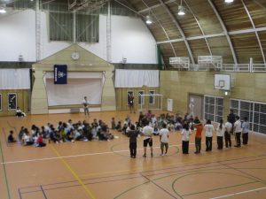 日中は『マークテーリング』や『オリエンテーション』を行い、夕食をモリモリ食べた後は今津小学校との『交流会』です。