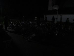 夜道を班ごとで歩きながら虫の声を聞いたり自然の音を感じたりします。