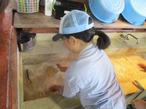 子ども達は楽しみながらも必死であまごを捕まえていました。