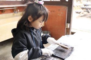 リーダーさんによるご指導の下、焼き板づくりを行いました!
