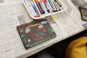 リーダさんが焼いてくれた杉板を、ワイヤーブラシで削り、好きな絵を描きます🎨